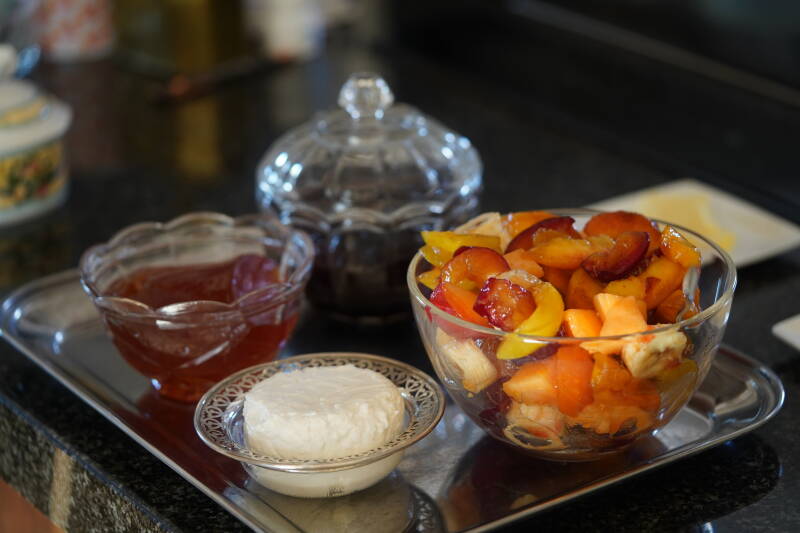 Tussen 8:30 en 10:00 kan u elke dag genieten van een uitgebreid ontbijtbuffet op het terras of in de keuken..